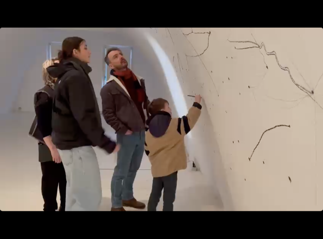 Het idee is dat bezoekers een punt zetten op de muur en vervolgens zich verbinden met andere punten. Wij zijn slechts een punt, een vonk tussen twee eeuwigheden in de oneindige ruimte. We verbinden ons met andere punten in ruimte en tijd en schrijven zo mee aan de geschiedenis van de mensheid…